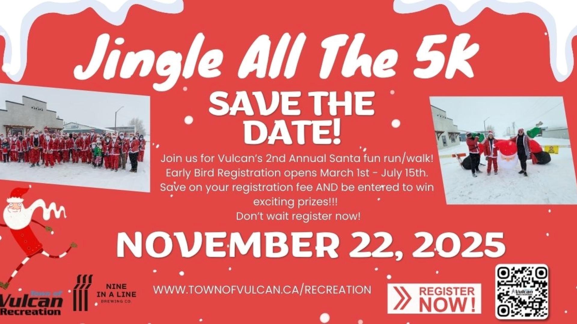 Get into the Christmas spirit with Vulcan’s second annual Santa Claus 5k run/walk! Register by November 15th to secure your Santa suit and swag bag. Cross the finish line to enjoy a fireside hot chocolate and BBQ