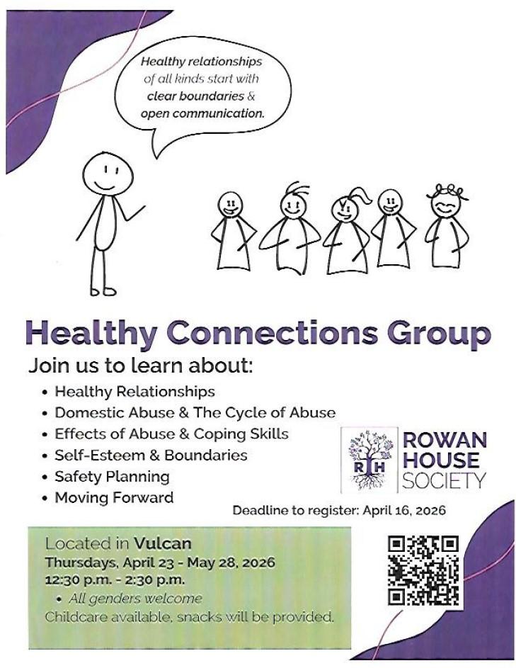 Open all Intermediate Spanish Course Jan 13 - April 28, 2026 Intermediate Spanish Course Adult Social Night Activities - January - March 2026 Adult Social Night Statistics Canada - Census Jobs - March to July 2026 EM Church - Kids Kingdom March 13, 2026 Bedtime Stories - Free to join - March 11, 18, 25, April 1 Mobile Mammography Screen Test - March 19-21, 2026 Screen Test Mobile Mammograph Easter Craft A Long March 30, 2026 Healthy Connections Group - April 23 - May 28, 2026 Parent Conference - April 18, 2026 First Aid Level C Course - April 18-19, 2026 Adult Social Night - April 14 - May 12 - June 16 Village of Arrowwood - Centennial Celebration May 30-31, 2026