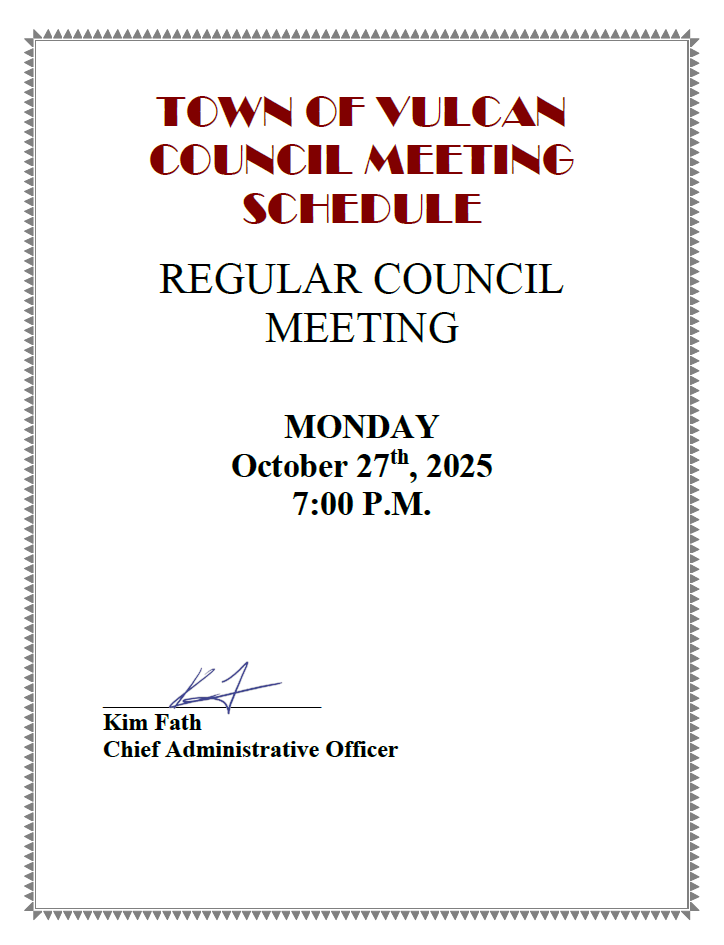 Town of Vulcan Notices
